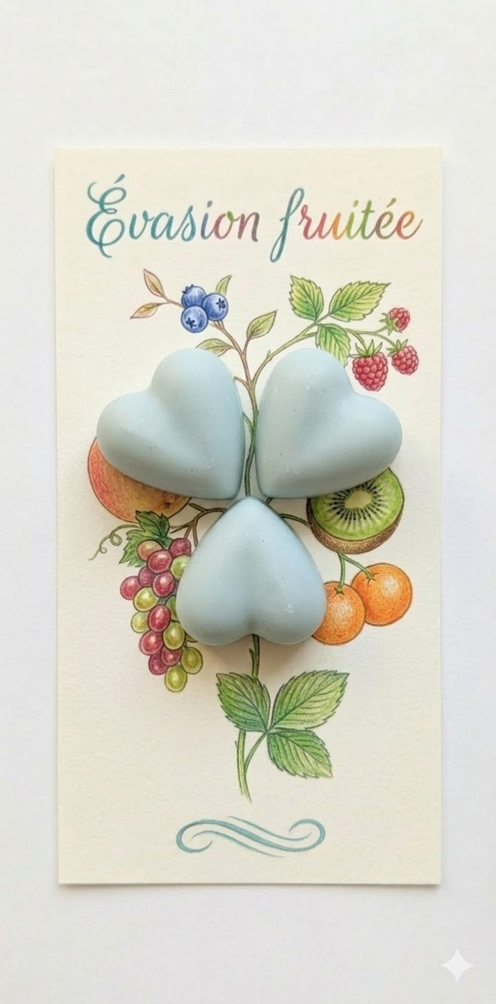 Fiche Technique : Entre 9g selon le modèle | Cire de soja naturelle | Formes variées (cœurs, pattes, fleurs, mini-tablettes).